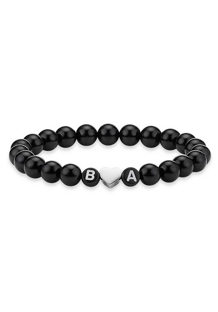 Bruno Banani Armband mit Gravur “Herz, personalisierbare Buchstabenperlen, B0191B/20/13”, Made in Germany – mit Onyx