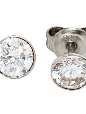 SIGO Ohrstecker rund 925 Sterling Silber rhodiniert 2 Zirkonia hellblau blau Ohrringe