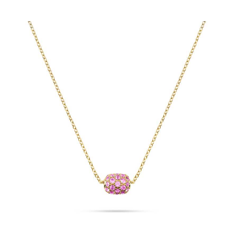 Die Kette aus 585er Gelbgold von GUIA ist ein echter Allday-Favorite. Die mittellange, filigrane Ankerkette hält sich selbst dezent im Hintergrund und überlässt dem eingehängten, zylindrischen Anhänger den großen Auftritt. Denn dieser wird von 40 pinken Saphiren zum Funkeln gebracht. Ob solo getragen oder trendy gelayert – diese Kette sorgt für lässig-luxuriöse Leichtigkeit in deinem Look.