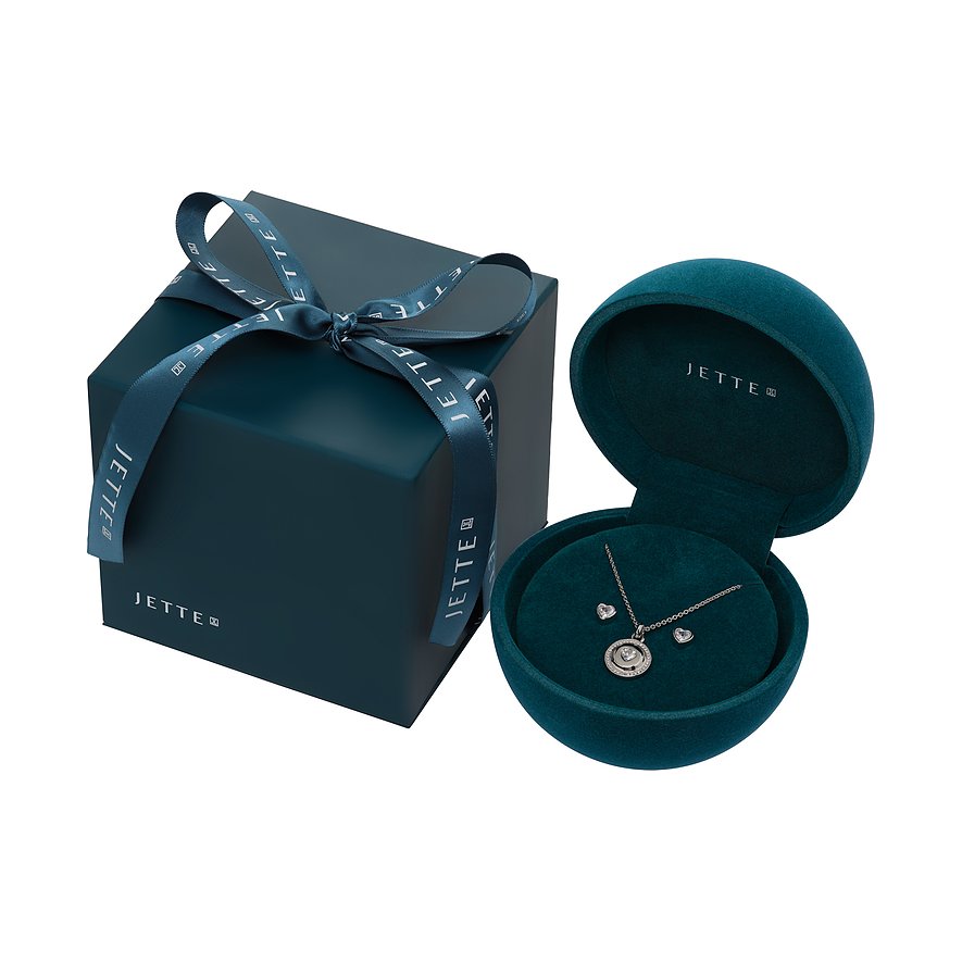 Let’s celebrate! Mit diesem edlen Schmuck-Geschenkset von JETTE aus recyceltem 925er Sterlingsilber liegst du immer richtig: Die zeitlosen Ohrstecker mit herzförmigen Zirkoniasteinen passen perfekt zu der Ankerkette mit dem runden Anhänger, in dem ein weiterer, herzförmiger Zirkonia sein feuriges Funkeln entfaltet. Tatkräftig unterstützt wird er von etlichen weiteren, kleinen, runden Steinchen, die dem Anhänger einen strahlenden Rahmen geben. Dank eines praktischen Karabinerverschlusses lässt sich die mittellange Kette leicht anlegen und sicher tragen. Eine Zwischenöse sorgt dafür, dass der Halsschmuck problemlos in der Länge angepasst werden kann. Das Schmuckset macht sich in einer noblen Schmuckdose in tiefem Türkisgrün und mit passender Geschenkverpackung auf dem Weg zu dir.