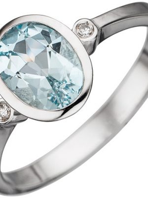 SIGO Damen Ring 585 Gold Weißgold 1 Aquamarin hellblau blau 2 Diamanten Goldring