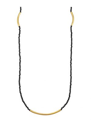 Schwarze Spinelle passen besonders gut zu vergoldeten Armbändern, wie in diesem Modell zu sehen ist.
