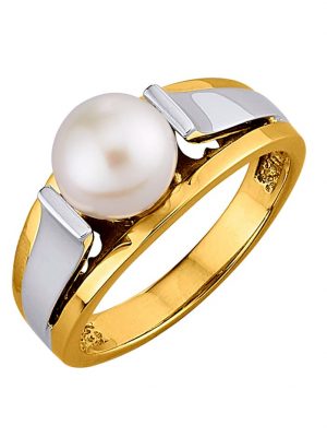 Damenring mit Süßwasser-Zuchtperle in Silber 925 Gelbgoldfarben